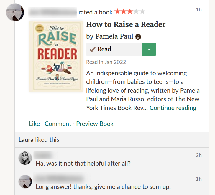 When she’d seen on Goodreads that I’d finished it and given it 3/5 she said this: